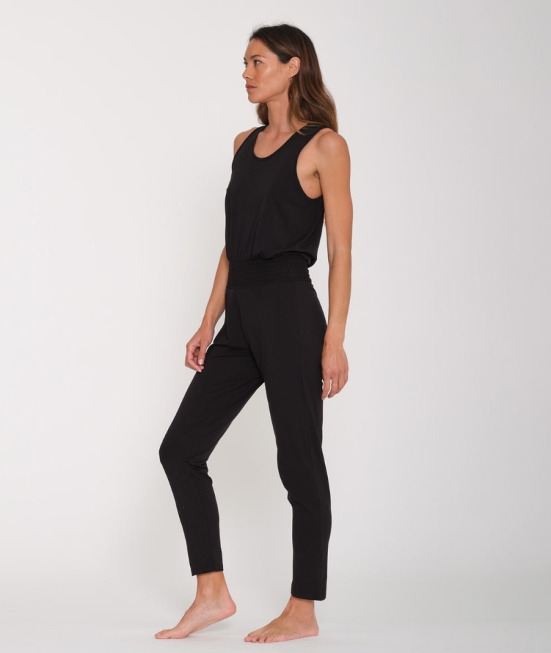 An elegant and airy piece, soft as silk, that hugs your movements during yoga practice and everyday life, and enhances your silhouette with its fluid cut and open back.