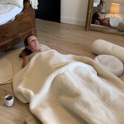 The OEKO-TEX® certified merino wool round meditation cushion, filled with buckwheat hulls and featuring a removable cover, offers comfort, stability, and natural warmth for your meditation and pranayama practices.