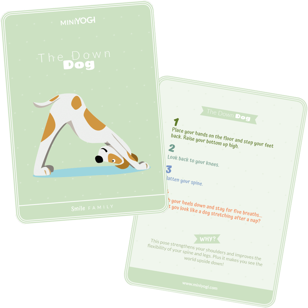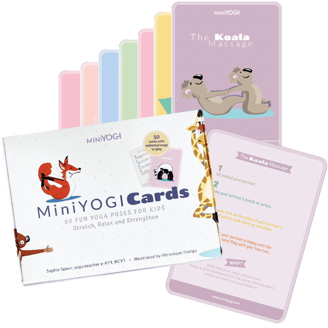 A joyful and colorful game for laughing, moving, and breathing together: kids discover yoga while having fun, at home or anywhere else.